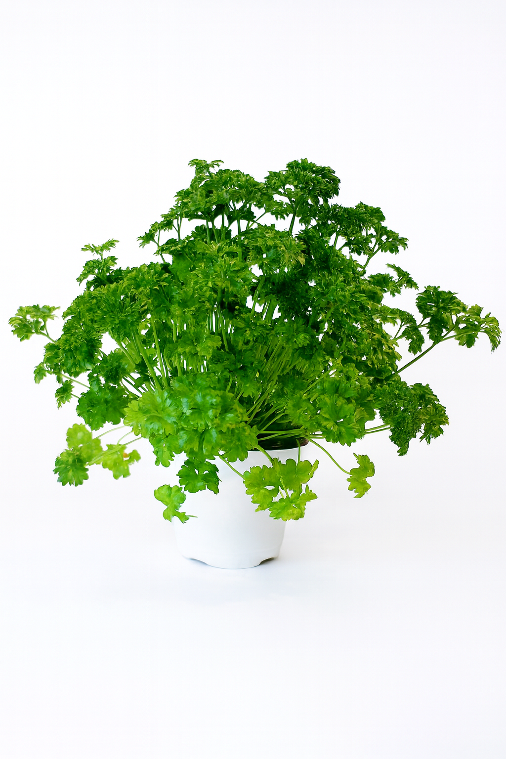Le persil frisé est une herbe incontournable, facile à cultiver en pot ou au jardin. Ses feuilles vertes finement frisées apportent une touche de fraîcheur et de croquant aux salades, aux soupes, aux plats mijotés et même en garniture décorative.